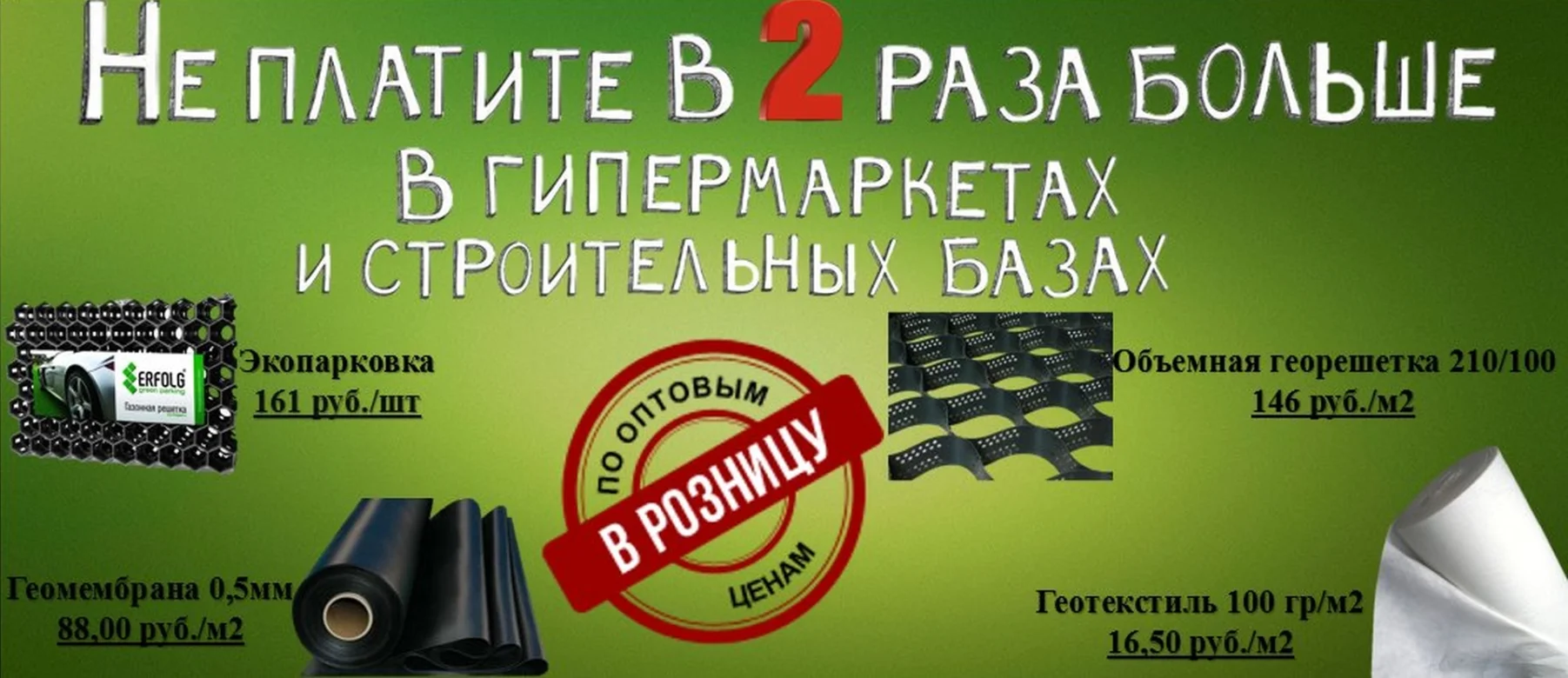 - Дешево. Продвигаем доступную ценовую политику, которая позволяет экономить до 20% на приобретении геосинтетики.