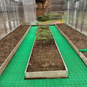Пластиковое покрытие отличается высокой эластичностью, выдерживает механическое воздействие, не портится при перепадах температуры и изменение влажности. Также помимо использования покрытия из пластика на улице, она также хорошо применима в закрытых помещениях (спортзалах, теплицах).